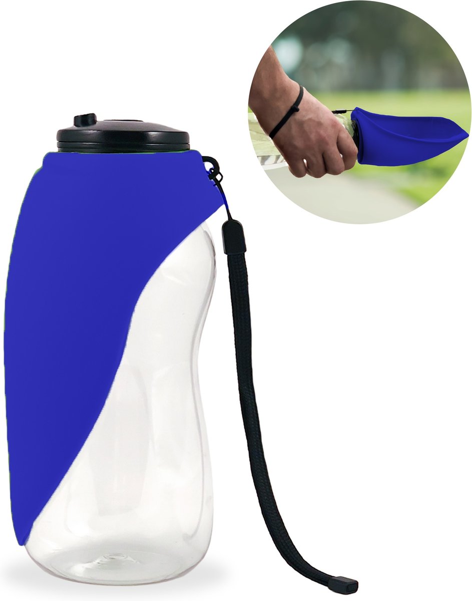 Flipo Fold-A-Bowl Non-skid Plastic Dog & Cat Bowl & Water Bottle, Gray, 26-oz, Blue