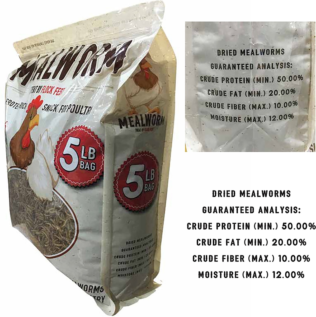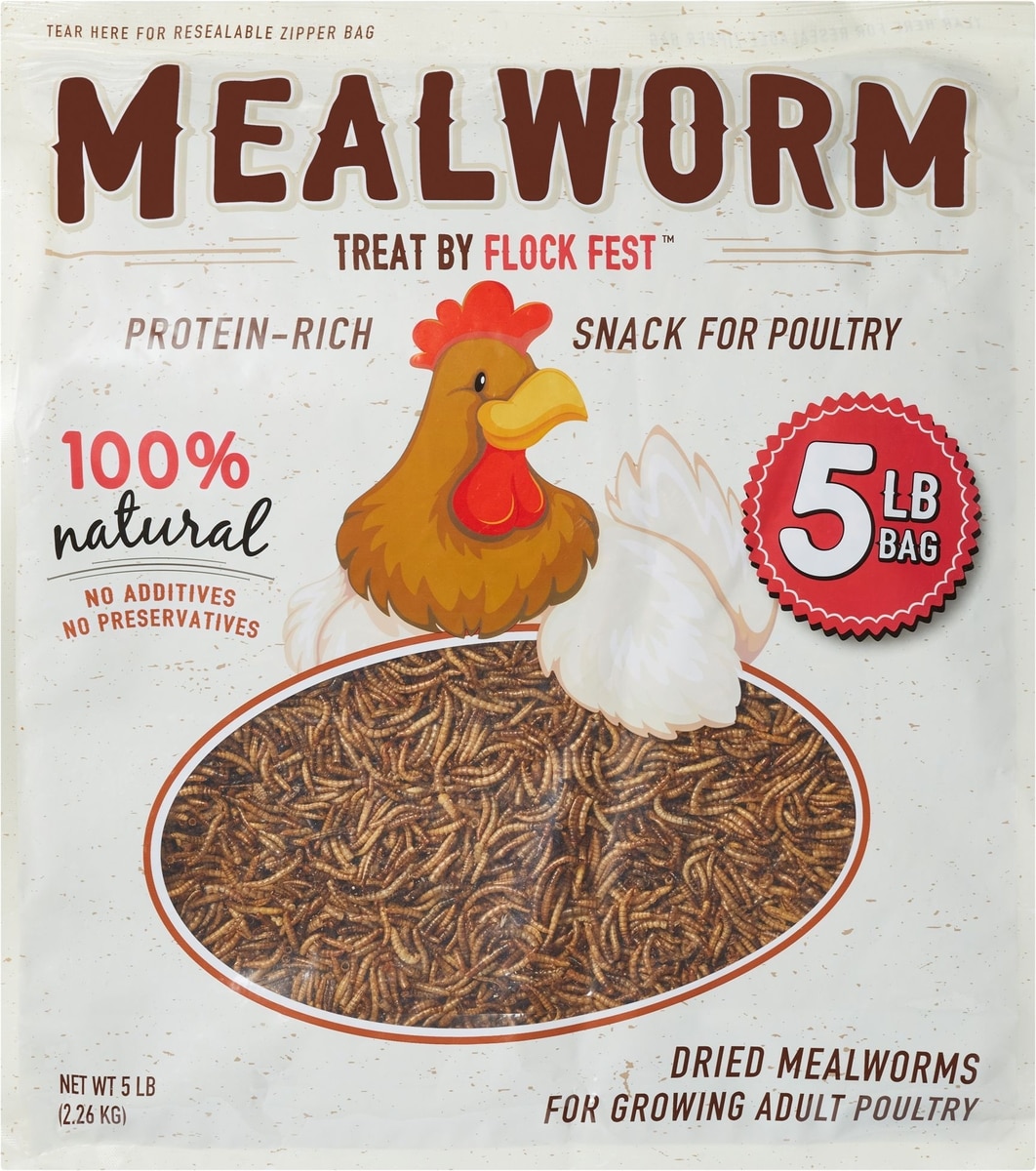 Flock Fest Dried Mealworms Adult Poultry Treats, 5-lb bag, 1 count
