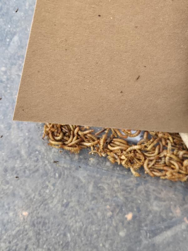 The mealworms are either in a box or a cardboard round canister, with egg crates, depending on how many you order.