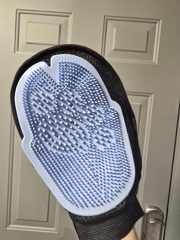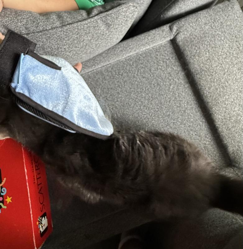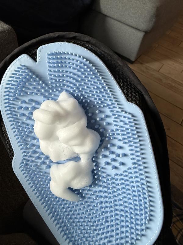 We have used this to clean our elder cat who was injured and recovering. He wasn't able to groom and it was getting a little unkempt. Didn't fuss or complain at all while massaging it into the coat and brushing it clean with the glove. In fact that glove works great by itself to just remove loose dander and hair when they can't groom. The two sides are different and one is more like a lint brush for clothes while the other is better for the massage/cleaning.
