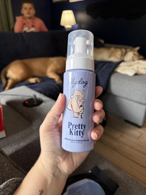 I have four indoor cats and four indoor-outdoor cats, and the FlyDog Pretty Kitty waterless foam shampoo has quickly become a favorite. I especially love using it on my outdoor cats — they often come in a little dusty or dirty, and this foam freshens them up instantly without any stress. The included mitten with the scrubber brush is fantastic for removing loose hair, and my cats absolutely love the massaging feeling while I use it. It’s quick, easy, and keeps my cats smelling fresh between baths. I’ve found it to be gentle, effective, and perfect for cats who aren’t fans of traditional baths. I would definitely recommend FlyDog Pretty Kitty to other cat owners and will be purchasing it again. It makes grooming so much easier and more enjoyable for both me and my cats.