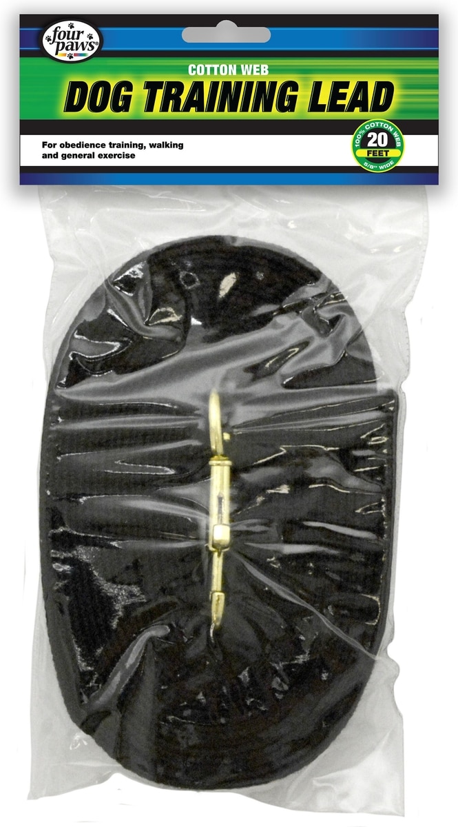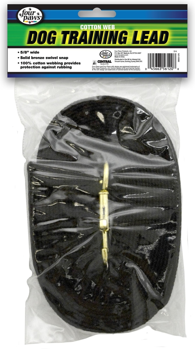 Four Paws Cotton Web Training Dog Lead, Black, 20-ft