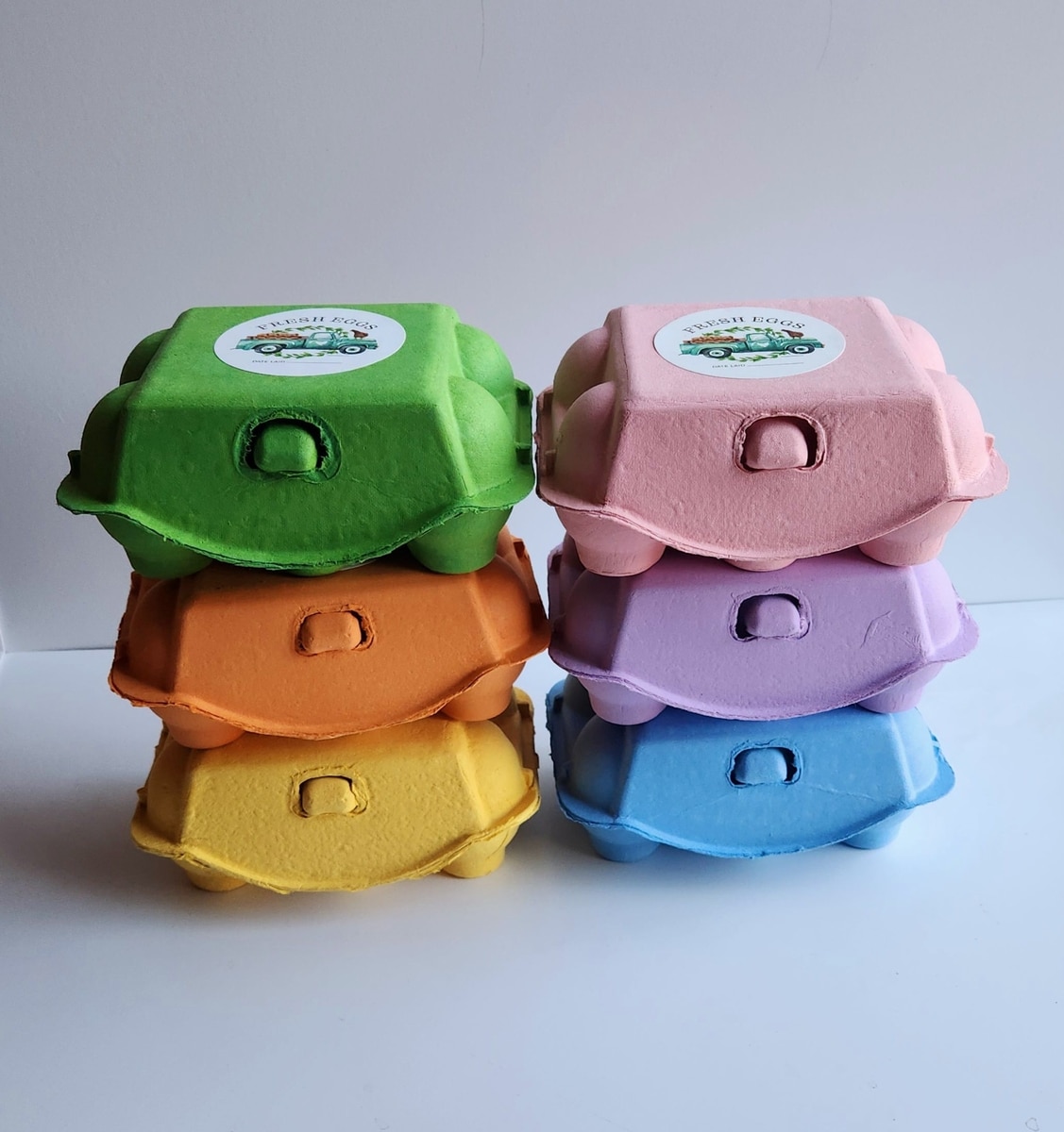 - These colorful egg cartons are made of reusable, recyclable pulp paper cardboard.