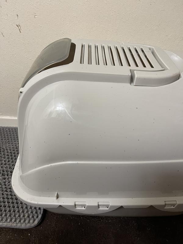 I removed the plastic opening for senior cats. Been a great size and easy to keep clean. Neutral color looks good in the room.