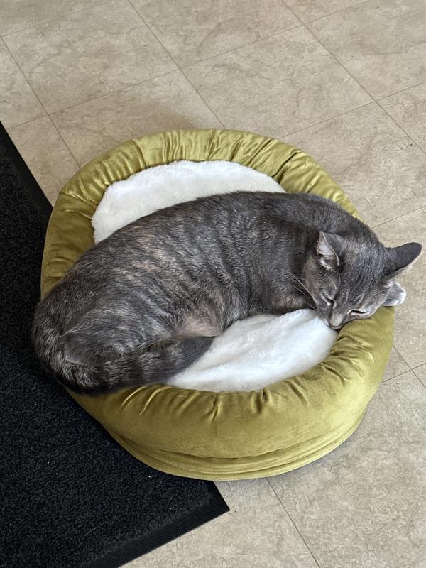 The cats love this bed! They like to curl up when they sleep but I did catch a picture of her also stretched out. I bought 3 other beds at the time and this is the only one they will use. (I have even sprayed cat nip on the beds.) Would definitely buy again!