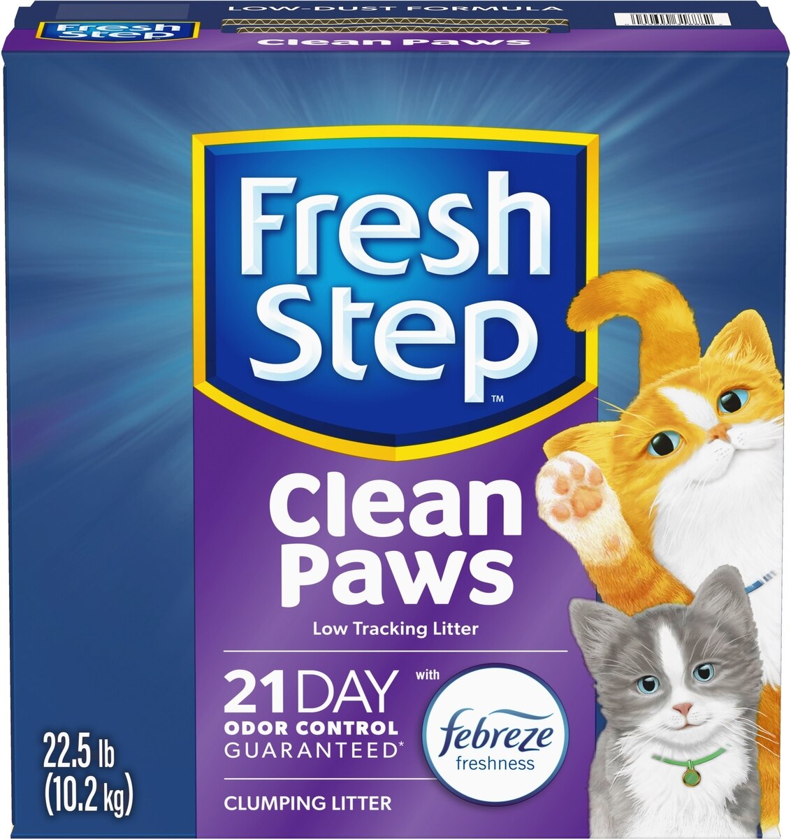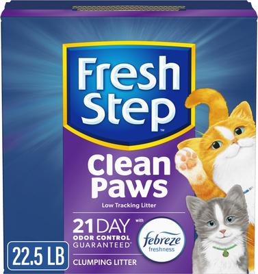 With Fresh Step Clean Paws, formulated with the power of Febreze and a low-dust formula, you can enjoy a cleaner home–even if you have more than one cat. With Ammonia Block technology, it offers up to 21 days of odor control.