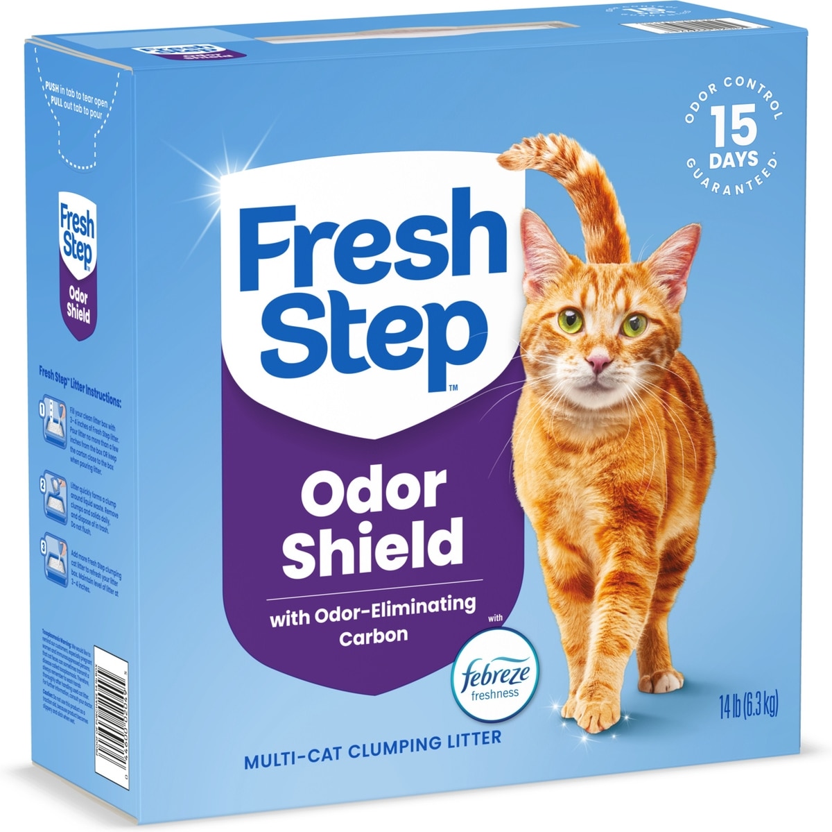 - Fresh Step Febreze Freshness Gain Scented Clumping Clay Cat Litter, 14-lb box$13.99 Chewy PricePromo, New Customers Only: Spend $49+, Get $20 eGift Card