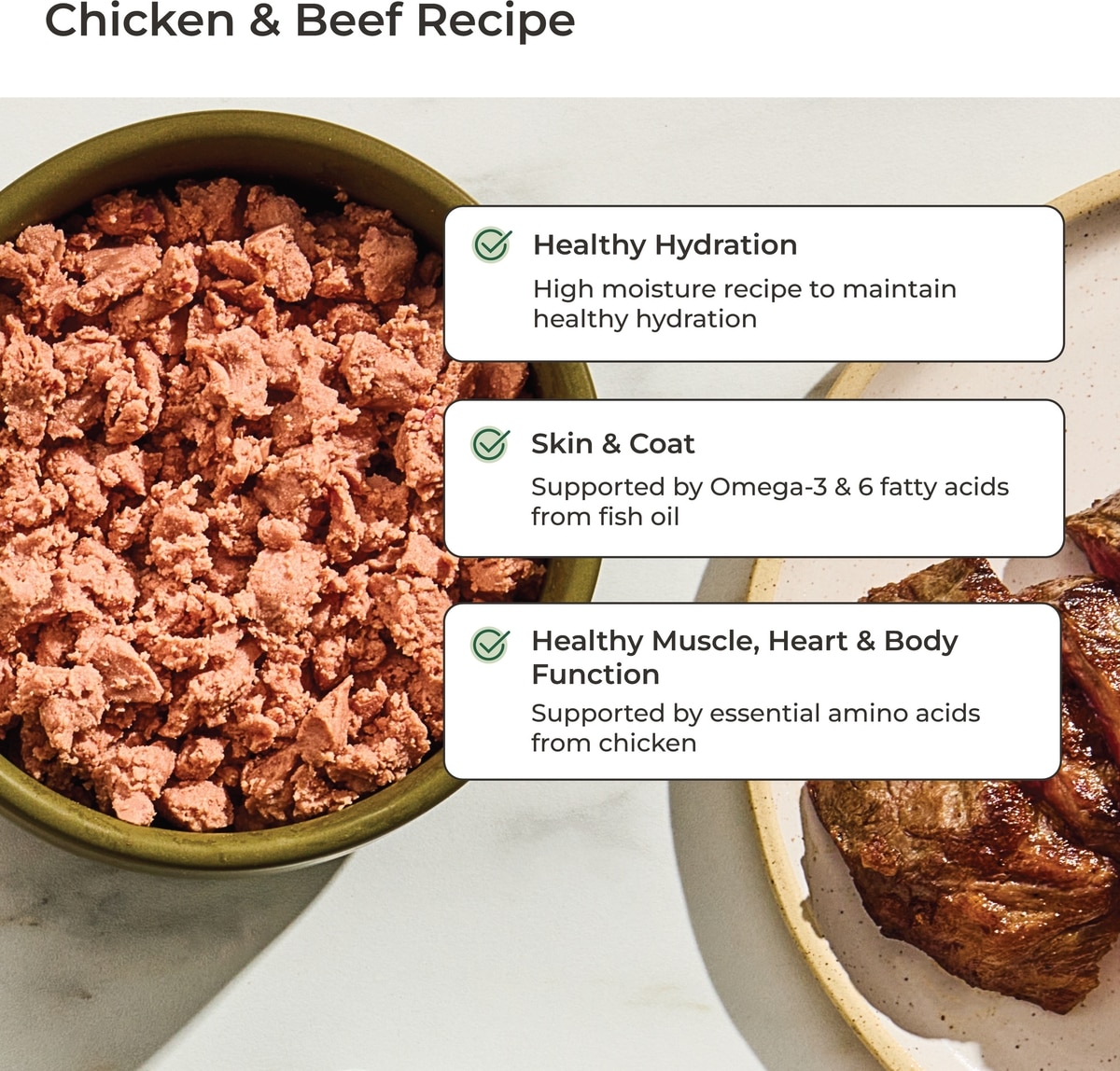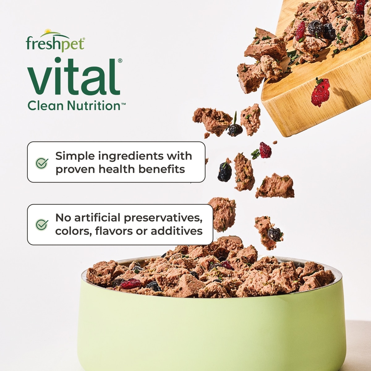 Vital offers fresh, real food made with wholesome, non-GMO, all-natural ingredients to support your pet's health. Made with 100% farm-raised chicken, beef, and fish, our recipes contain no preservatives, by-products, or rendered meals—just the good stuff.
