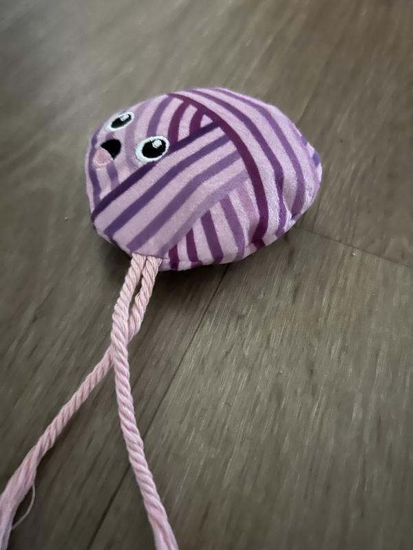 I knit and crochet.. a lot, so I thought getting my cat her own "yarn" to play with would help distract her from my project and give her something safe to play with