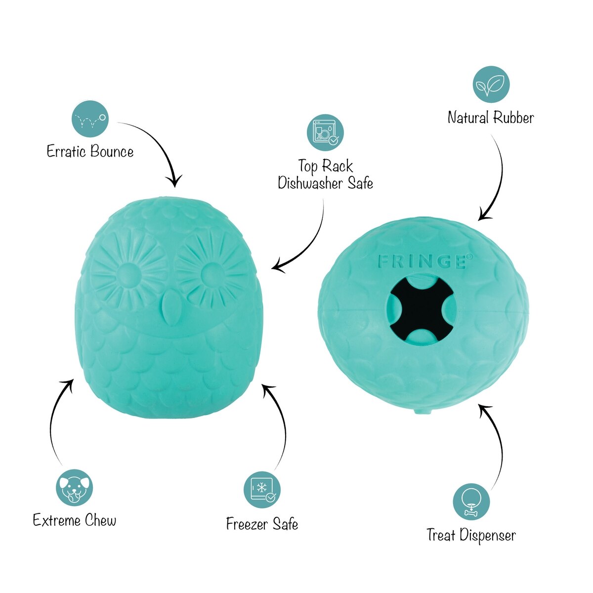 Fringe Studio You're A Hoot Rubber Dog Toy, Turquoise