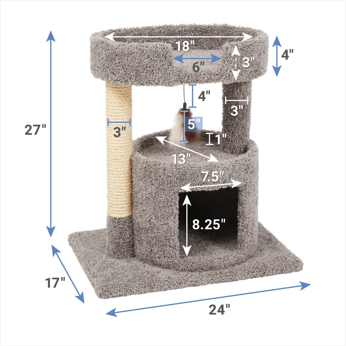Frisco 27-in Real Carpet Cat Tree with Condo & Oval Perch, Gray