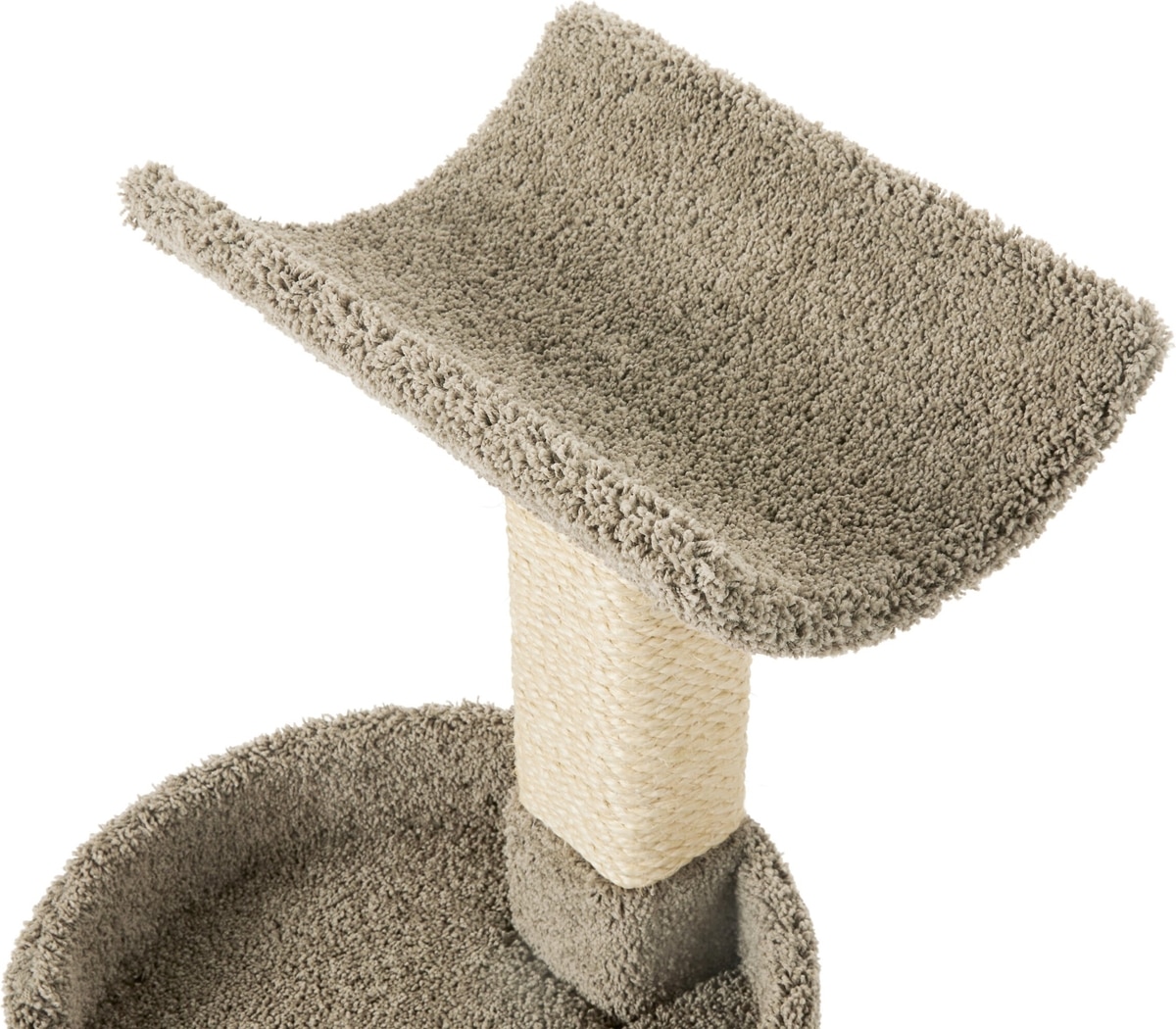 • Provides two perches at different levels—a round perch and a hammock-shaped perch—for your cat to lounge, play and nap on.
