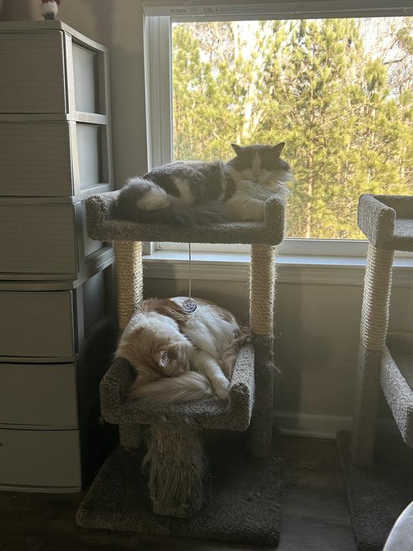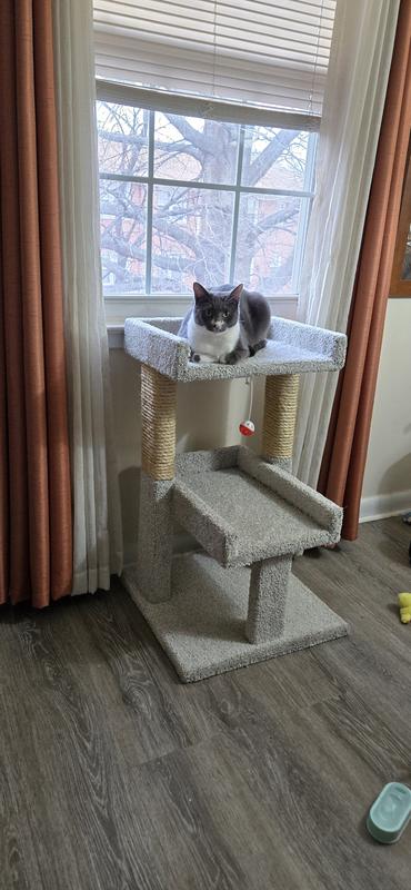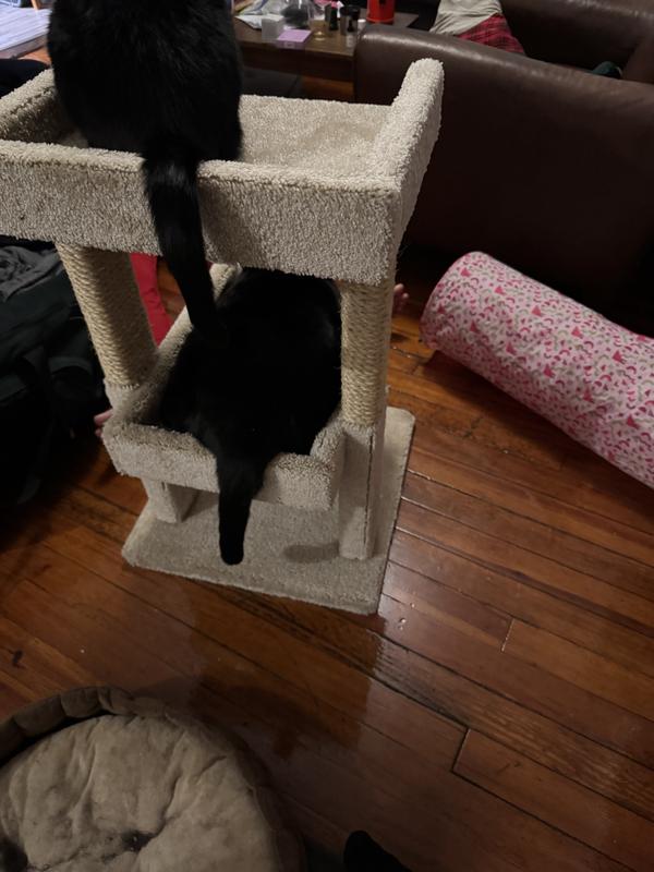 Frisco 32-in Real Carpet Solid Wood Cat Tree with Toy, Beige
