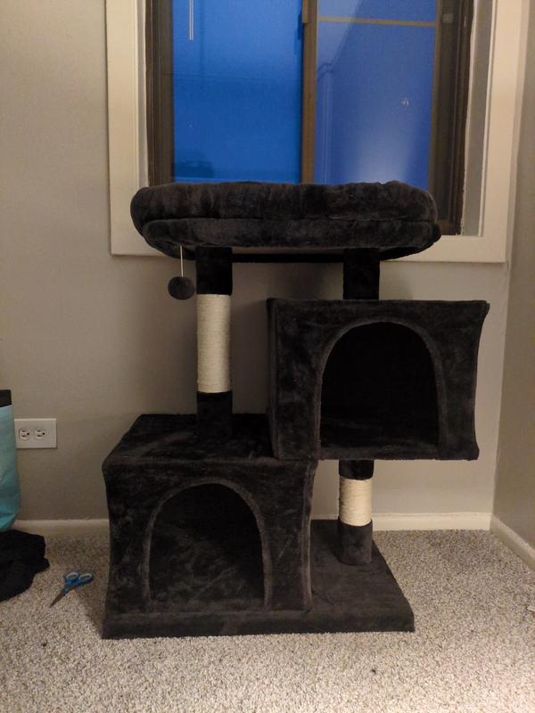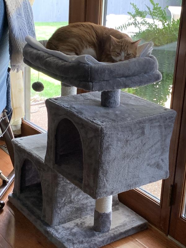 Frisco 33-in Faux Fur Cat Tree & Condo, Dark Charcoal