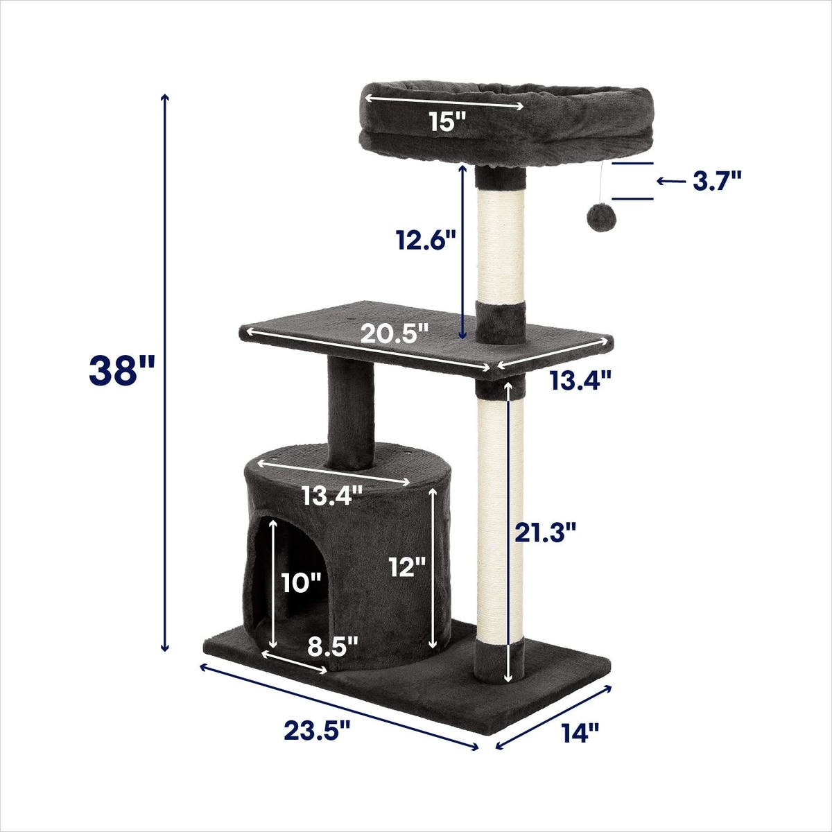 Frisco 38-in Cat Tree with Condo, Top Perch & Toy, Charcoal