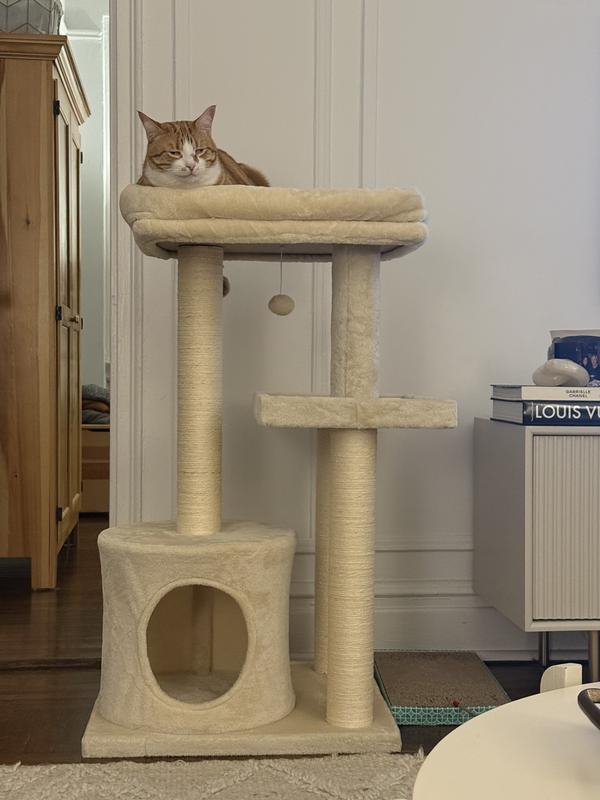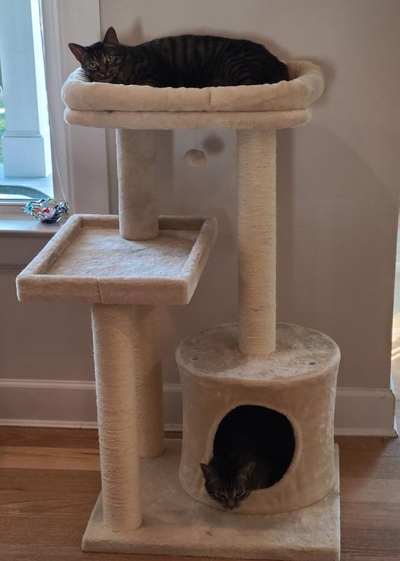 Frisco 42-in Heavy Duty Faux Fur Cat Tree & Condo, Cream