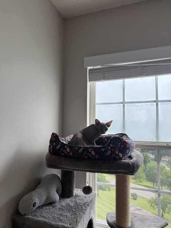 The Happiest Homebody Frisco has everything you need to make your home just as one-of-a-kind as they are. Wall-mounted cat shelves and window perches provide a safe hang out. Cat condos can offer relaxing privacy. Make your home an even happier place for you and your cat with Frisco.