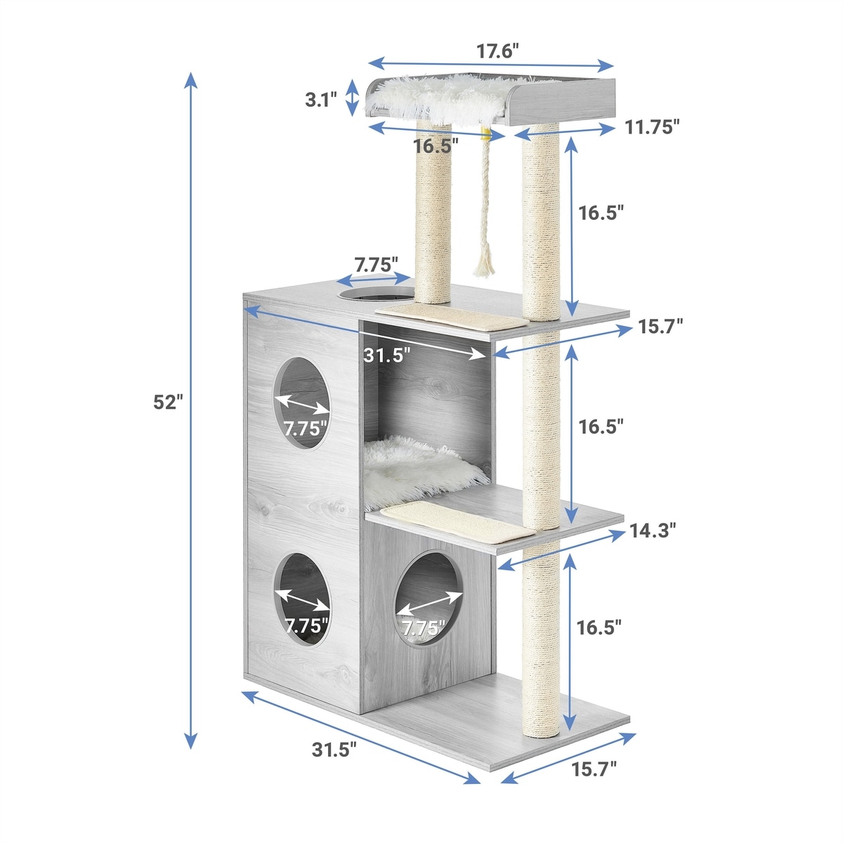 Frisco 52-in Modern Cat Tree & Condo, Gray