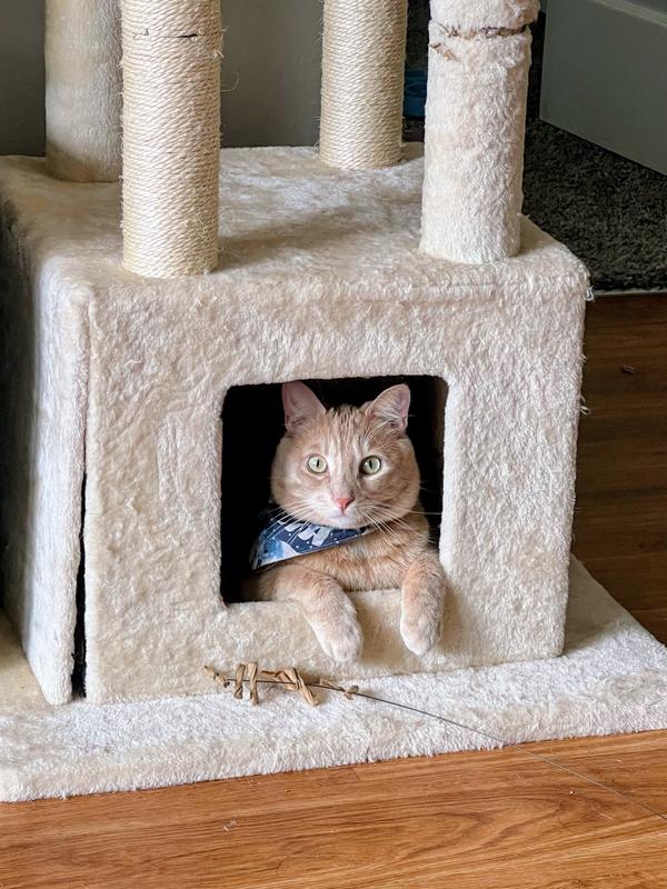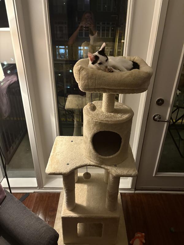 This was such an easy put together tree and my cat really seems to like it. She loves laying in the top bed with her head resting on the sides of if since they’re soft.