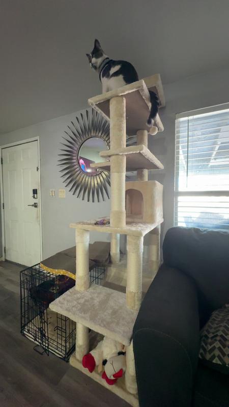 Frisco 78-in Faux Fur Cat Tree & Condo, Cream