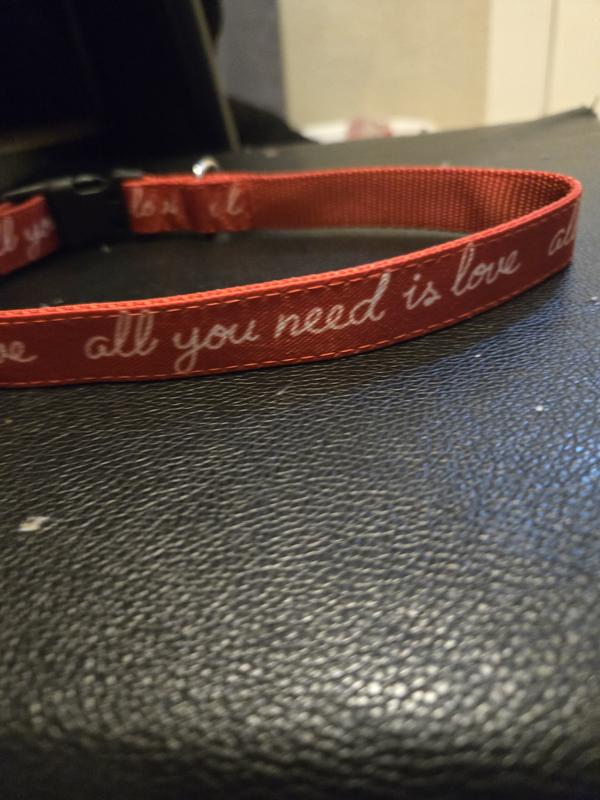 Frisco Valentine's All You Need Is Love Dog Collar, S: 10 to 14-in neck, 5/8-in wide