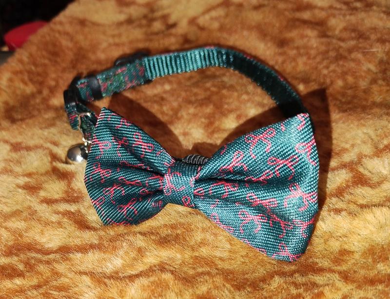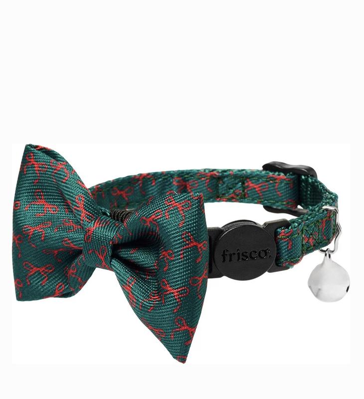 Frisco Christmas Bows Print Breakaway Cat Collar with Bell & Removable Bow, 8 to 12-in neck, 3/8-in wide