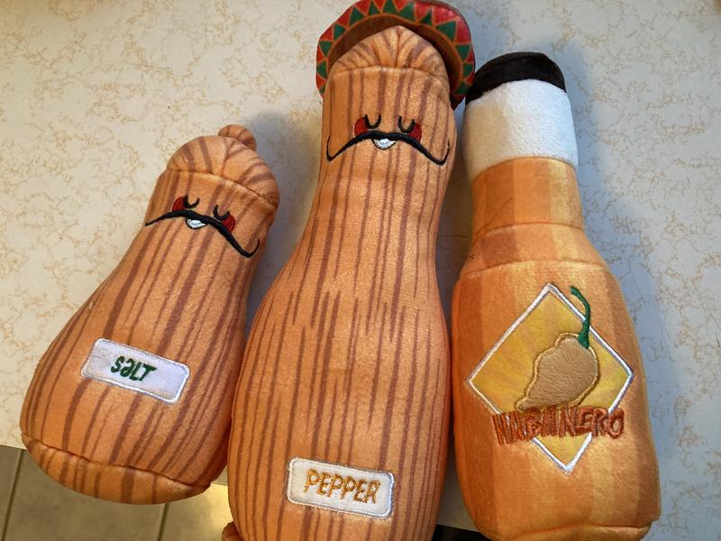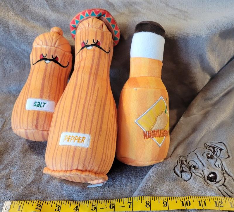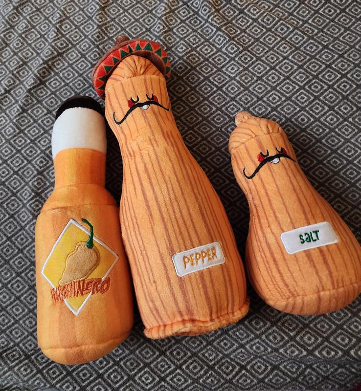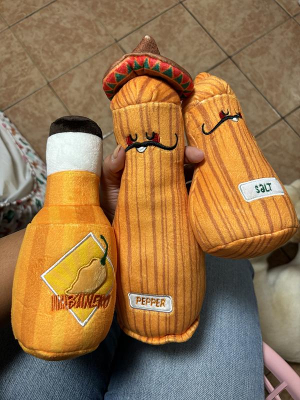 Frisco Brunch Salt, Pepper, Hot Sauce Plush Squeaky Dog Toy, 3 count