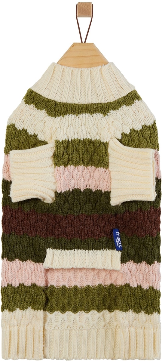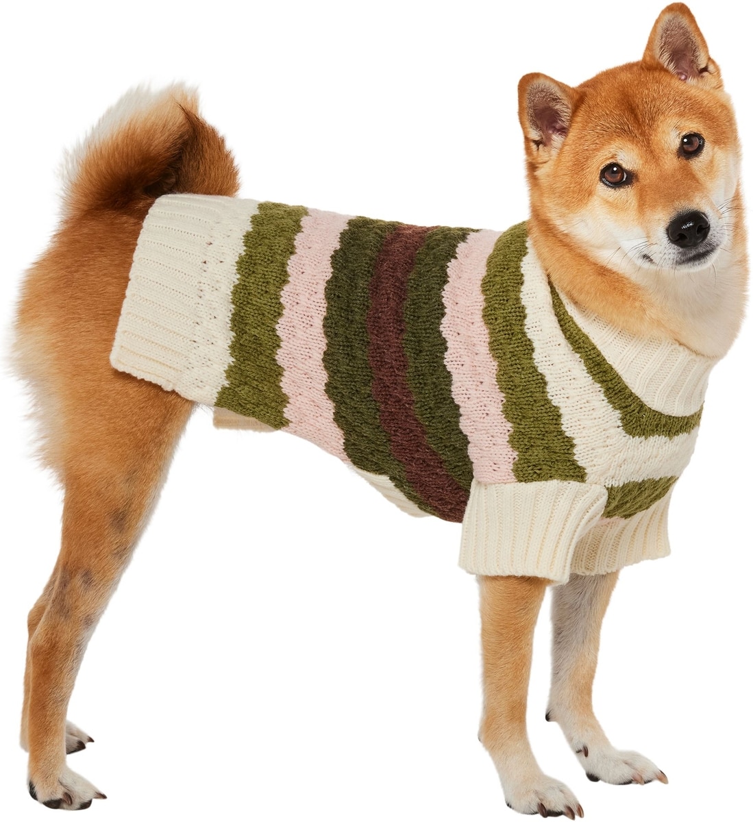 Frisco Bubble Knit Multi Striped Mock Neck Dog & Cat Sweater, Brown, Medium