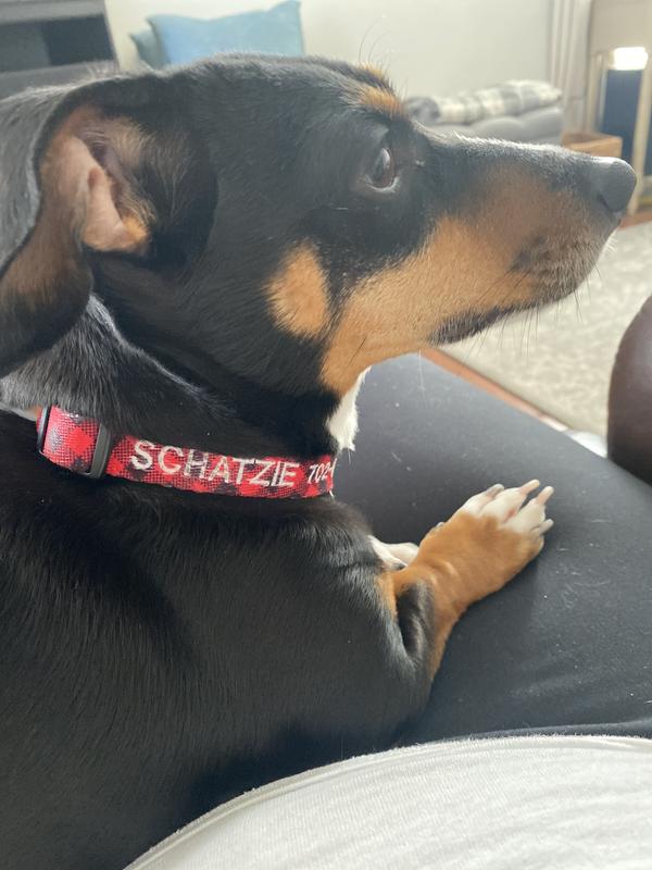 Great quality collar. The personalized embroidery is so cute! Itabit is a handsome boy with his new collar! Fast shipping and a great price made this a perfect