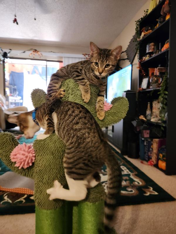 I have a pair of 10 week old kittens and they LOVE this!!! I bought the one with three posts so both can climb on it at the same time. Plus it’s adorable especially when you live in Arizona.