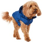 We have considered pets that do not like hoods when we designed this style, therefore the hood on this style is removable. The hood is attached with snaps at collar. This style still has a high collar to keep the dog's neck warm.