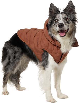 Frisco Mediumweight Quilted Dog & Cat Puffer with Removable Hood, Brown, Large