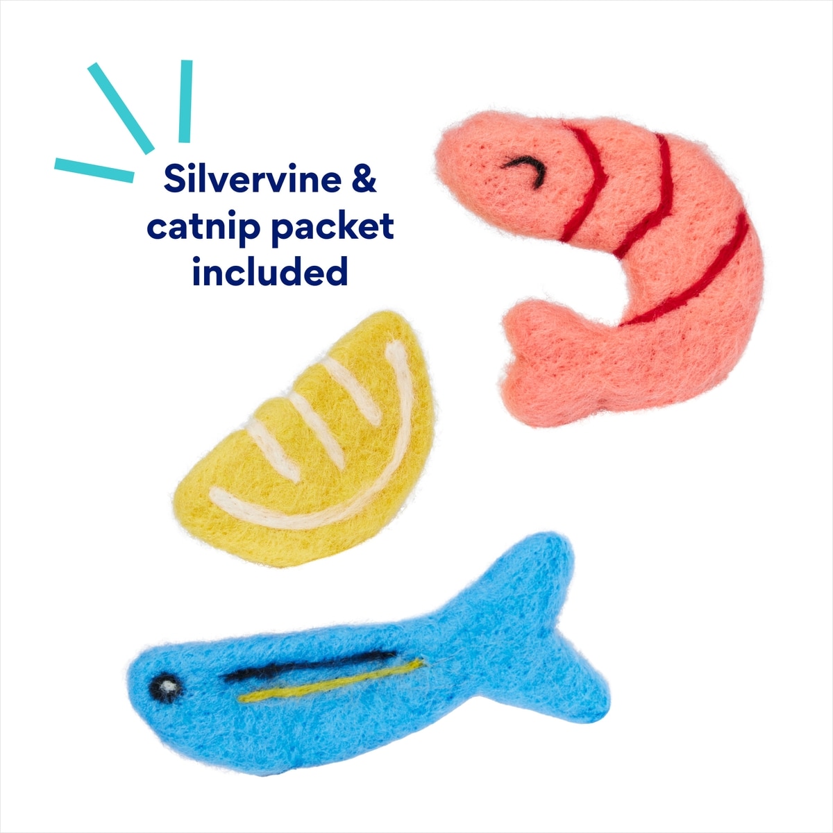 Frisco Shrimp & Sardine Wool Cat Toy with Silvervine & Catnip, 3 count