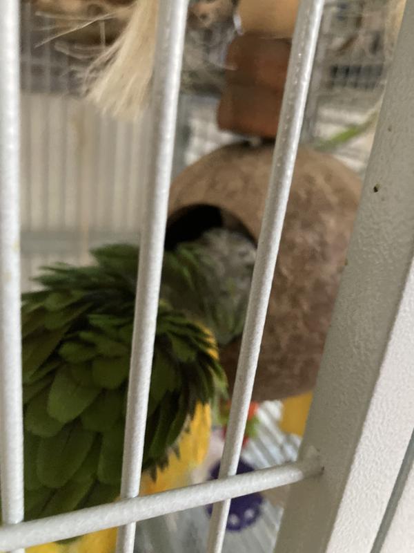 I like the shape of this. And it's a coconut to boot. It's hard to introduce a new item to a pet bird and after a couple of days she now finally has started using