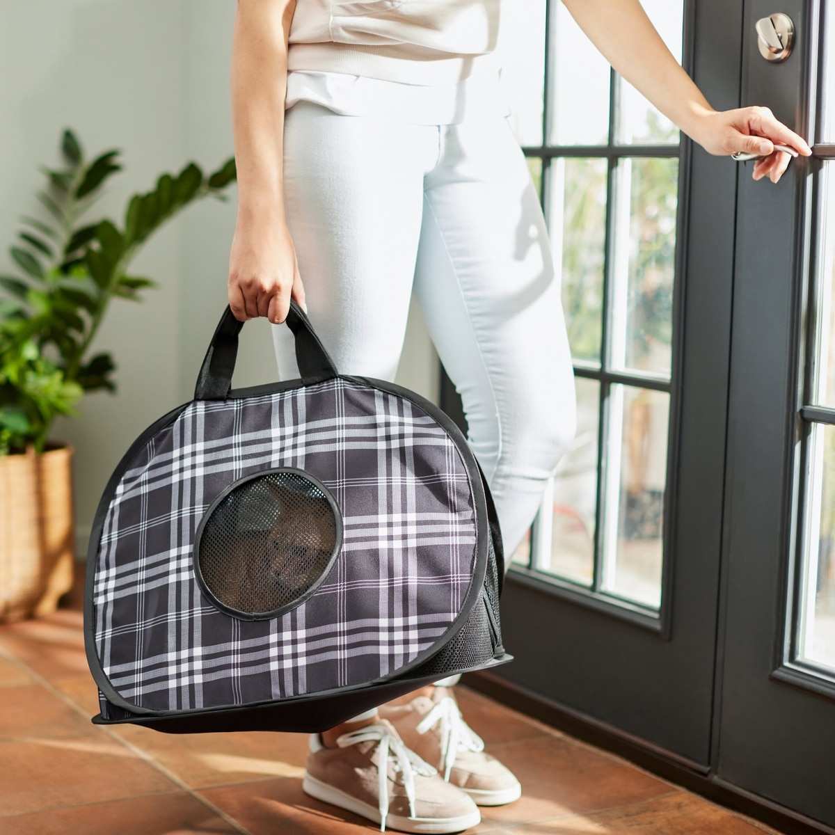 Frisco Collapsible Cat Carrier Bag, Black Plaid