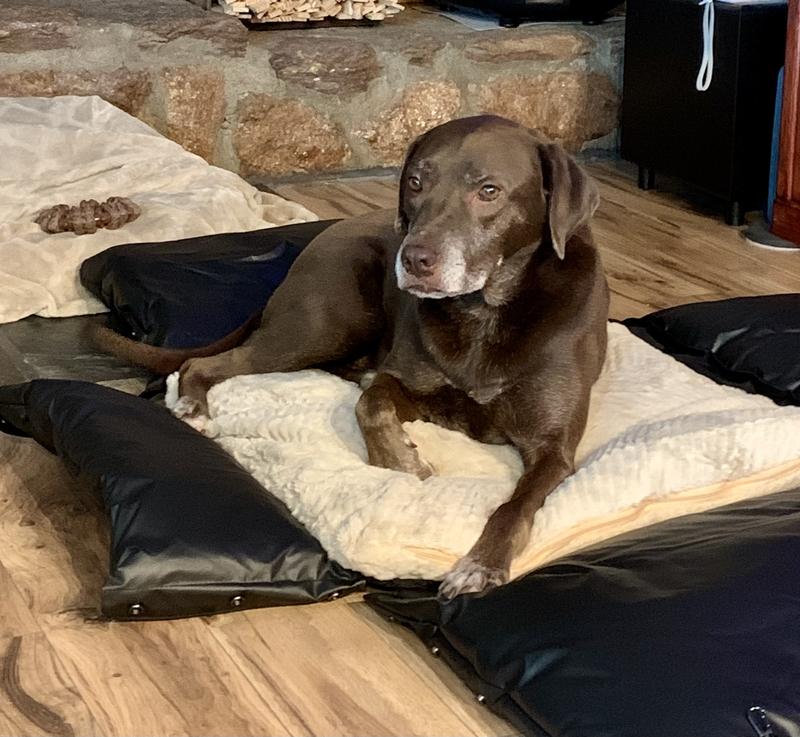 Haven’t been able to travel lately but realized that this works so well as a comfy sofa protector. Our big boy Toby (116 lb lab) loves to always sit in the corner