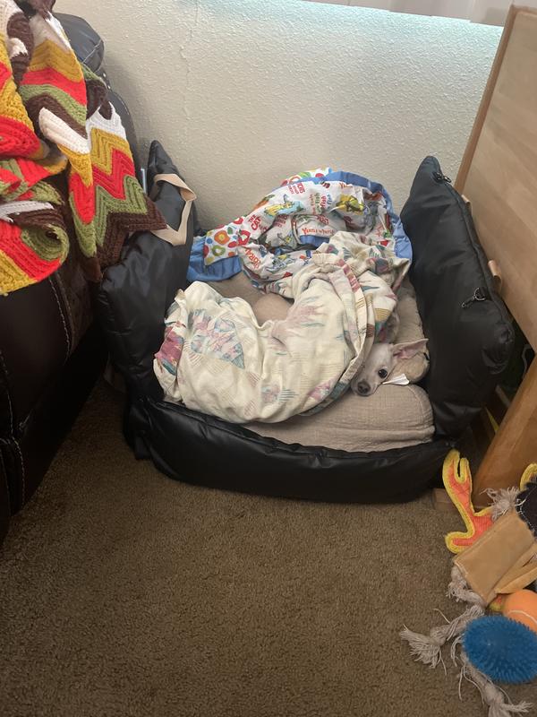 - The bed’s water-resistant fabric allows for easy cleaning.