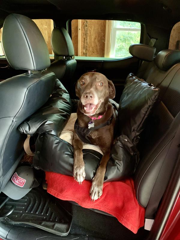 We set this up in the back seat of our big dually truck and used the front flap as a bridge to the front console for our 2 new puppies. Just put our little ice chest under the flap for support, blanket on top, and they are ready to travel!!