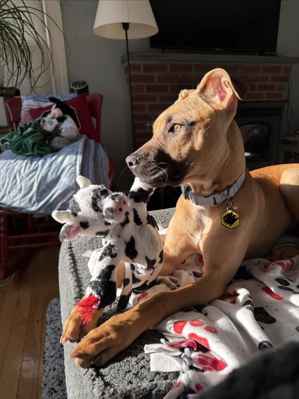 Frisco Cow Plush with Inside Rope Squeaky Dog Toy, Medium