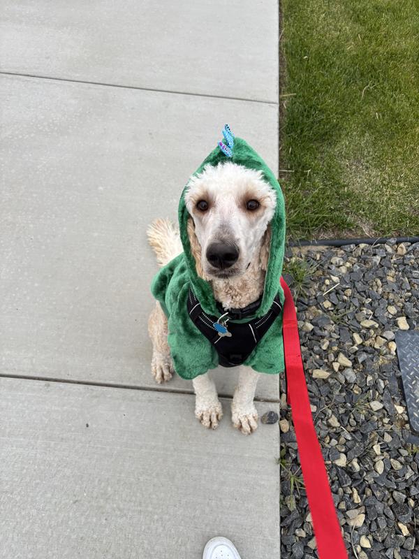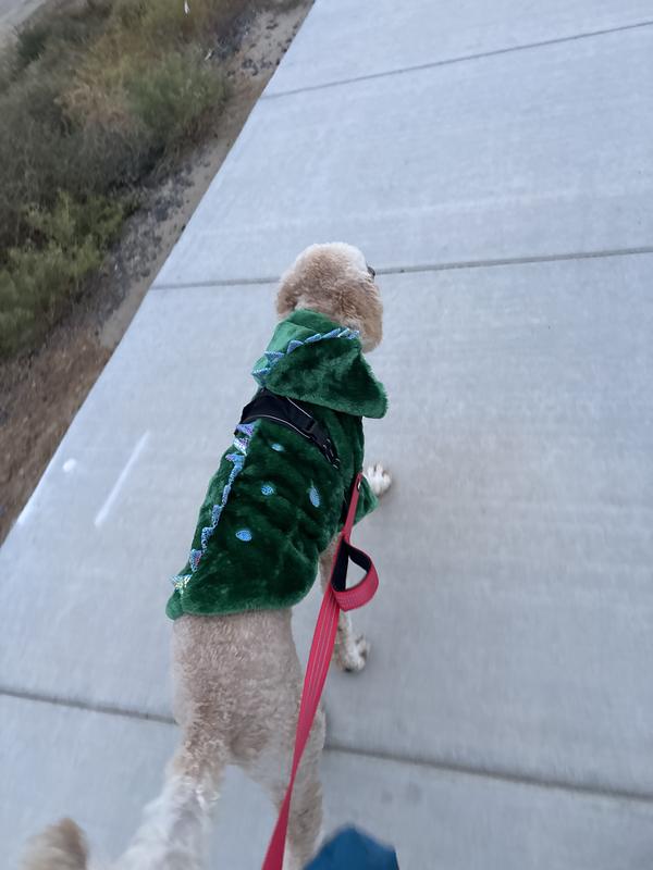 My foster dog does not like the cold weather, so we have bought her a ton of shirts & hoodies. Even though this is probably supposed to be a Halloween costume, she wears it around all winter like it’s a regular hoodie. Fits great!