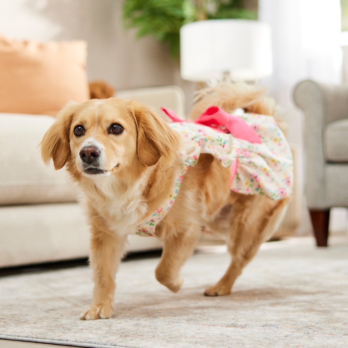 Frisco Dainty Pink Floral Dog & Cat Dress, Floral, Large