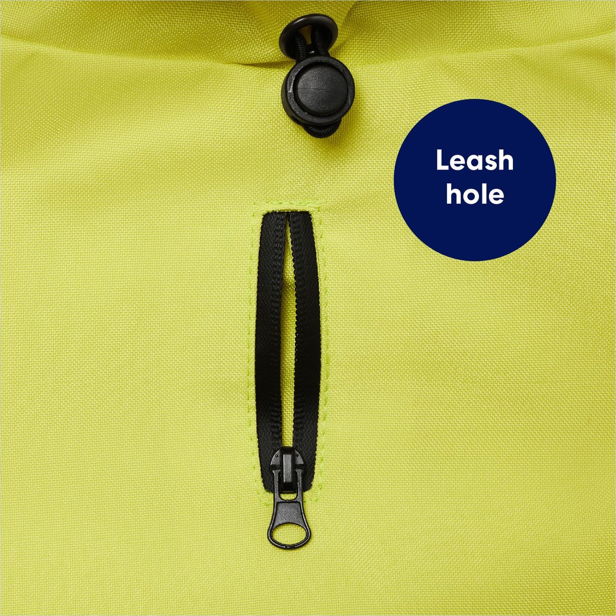 This raincoat features a zippered leash hole that is compatible with collars and harnesses.