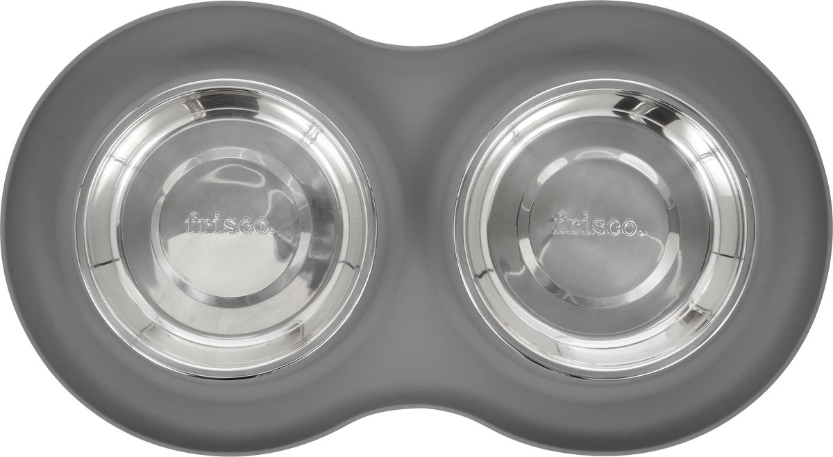 Frisco Double Stainless Steel Pet Bowl with Silicone Mat, Light Gray, Small: 1.5 cup