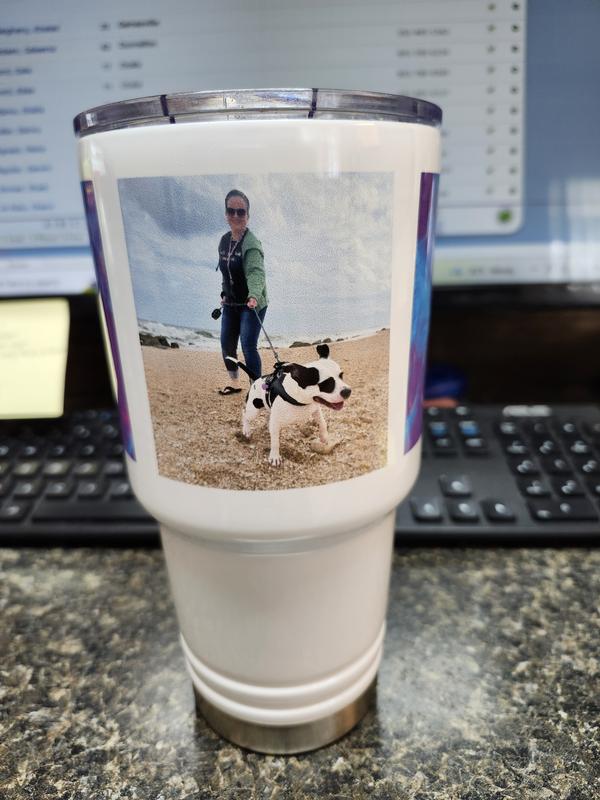 The tumbler has a 30-oz capacity.
