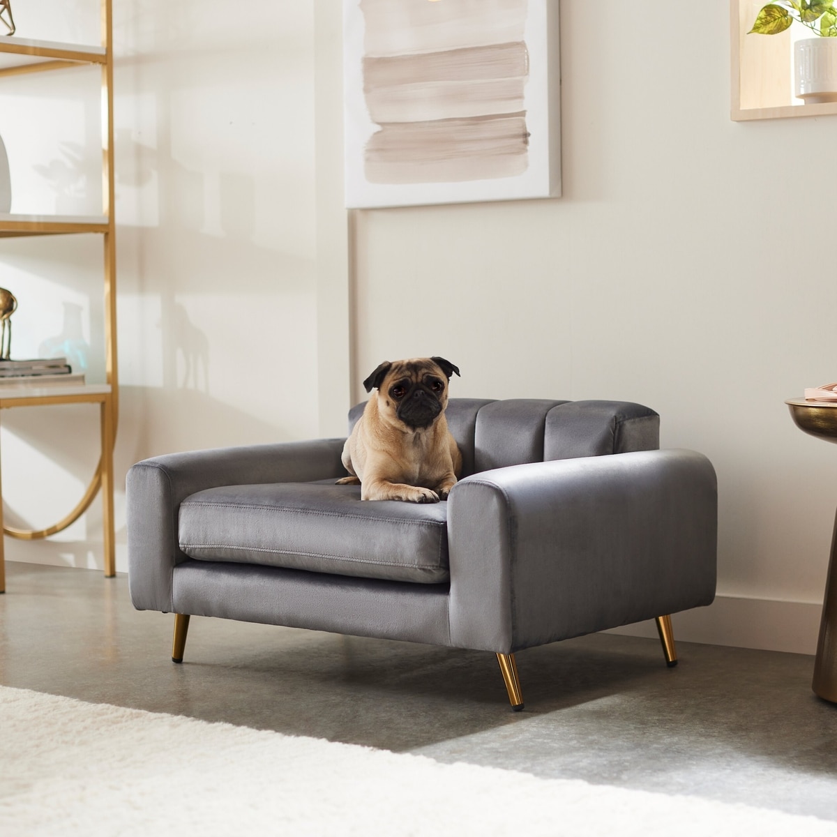 This Frisco Art Deco pet sofa bed is so adorable. It looks just like a miniature couch. My dogs love it too. It was very easy to put together. Just screw on the legs and you’re all set. I also like that it has removable cushion covers for cleaning. It’s also very nice quality.