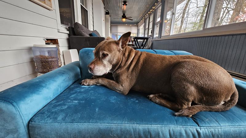 Luna loves her new couch! The cover is durable and easily removed to toss in the washing machine :)
