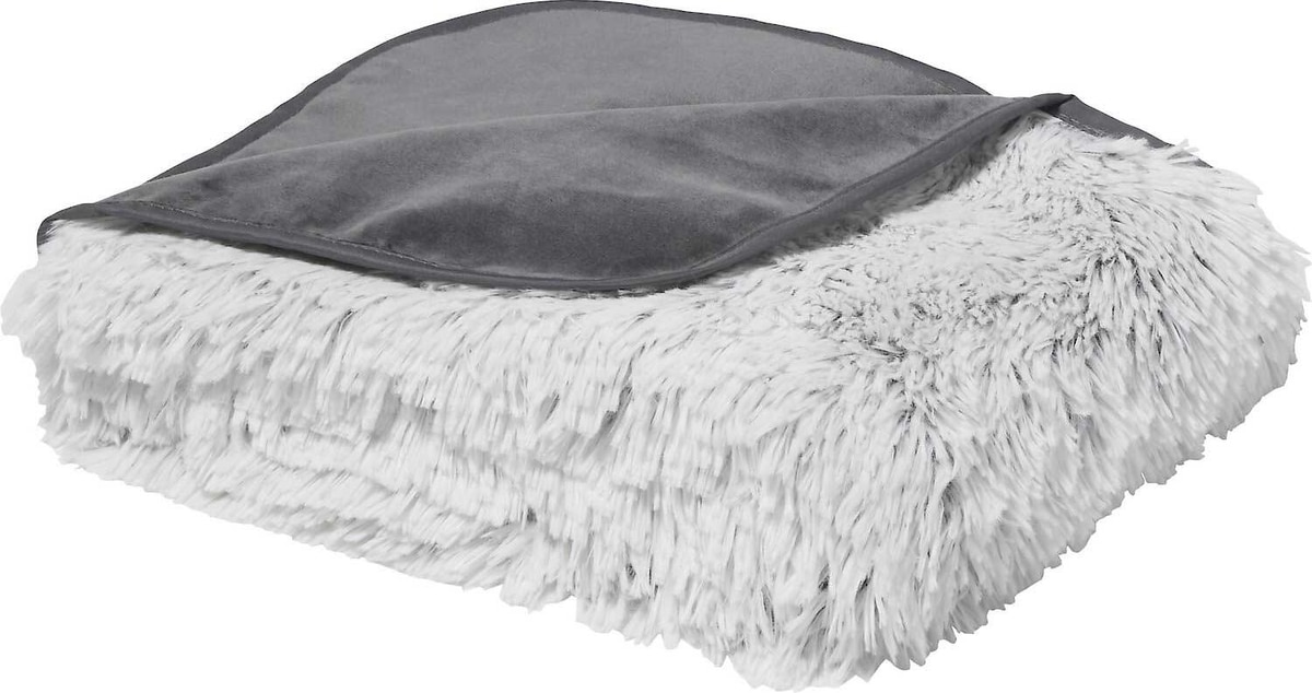Bundle: Frisco Eyelash Cat & Dog Bolster Bed + Blanket, Silver, Medium