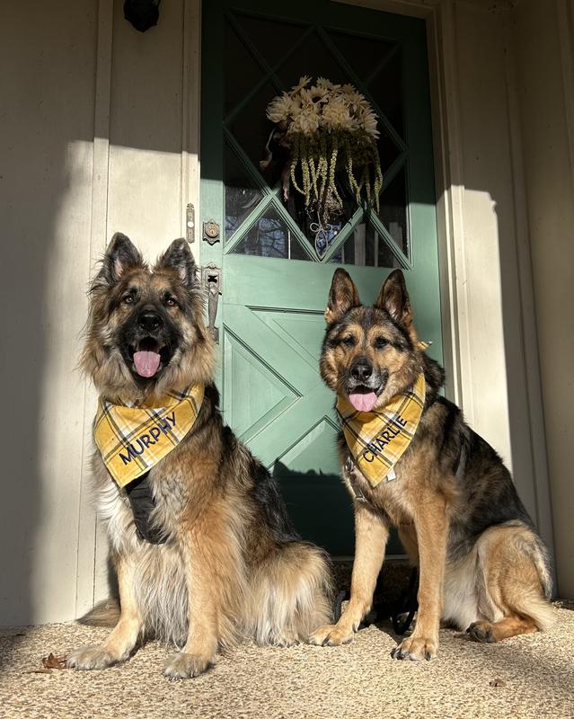 Our two dogs received these great scarves as Christmas presents from friends who ordered them for all of our Golden Retrievers going to the Daffodil Festival on Nantucket in April! The quality is great and the personalized lettering is beautiful!!! Just wish they came in a smaller size for little dogs. Thank you!!!