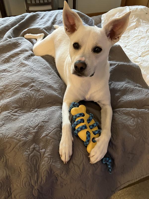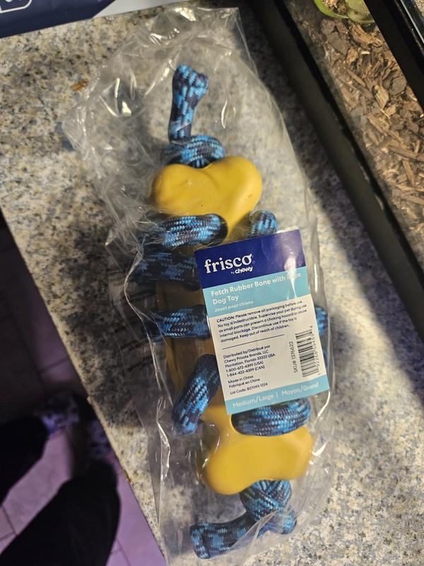 Frisco Fetch Rubber Bone with Rope Dog Toy, Medium/Large