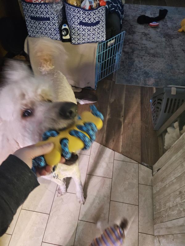 - DealFrisco Dual Handle Tug Tough Rubber Dog Toy, Medium/LargeBy$16.99 Chewy PricePromo, Spend $100, Get $30 eGift Card with code NEWYEAR +1 deal